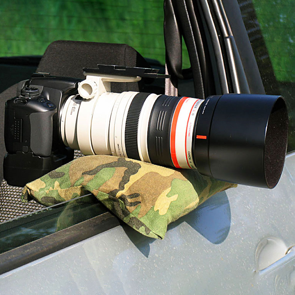 Dient zur Auflage der Kamera auf einer Autotür oder ähnlichem. Ein kleiner Bohnensack ist handlich, leicht zu transportieren, eine Art kleines Polster (Kissen), das meistens mit Bohnen gefüllt wird. Auch andere Füllmittel wie z.B. Kichererbsen, Linsen, Kirschkerne sind aber ebenfalls geeignet. Die Größe ist abhängig von der Ausrüstung. Damit nichts wackelt, sollte die Größe auf Kamera mit Objektiv abgestimmt sein.